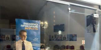 Επίθεση με βαριοπούλα στα γραφεία της Ν.Δ. στο Βόλο