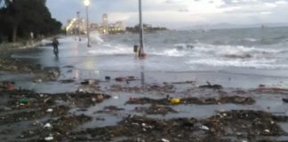 Οι νοτιάδες έβγαλαν την θάλασσα και σκουπίδια στην παραλία