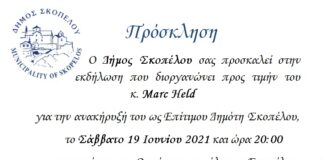Ανακήρυξη του κ. Marc Held σε Επίτιμο Δημότη Σκοπέλου