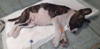 Μαθητές περίθαλψης χτυπημένη σκυλίτσα