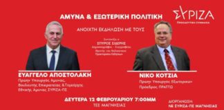 Εκδήλωση του ΣΥΡΙΖΑ την ερχόμενη Δευτέρα στον Βόλο με Ευάγγελο Αποστολάκη και Νίκο Κοτζιά