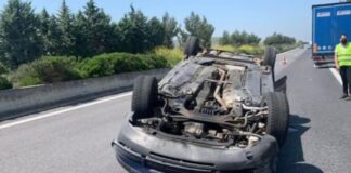 Άγιο είχε τετραμελής οικογένεια όταν τούμπαρε ΙΧ στη ΠΑΘΕ στον Αλμυρο