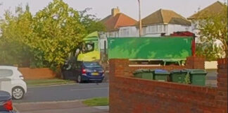 Απορριμματοφόρο εκτός ελέγχου πέφτει πάνω σε αυτοκίνητο (video)