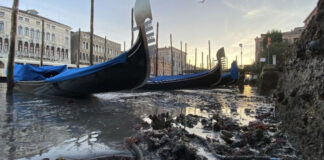 Στέρεψαν τα κανάλια της Βενετίας – Γόνδολες κόλλησαν λόγω άμπωτης στον βυθό (video)