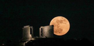 Μαγική η υπερπανσέληνος του Μαΐου – Εντυπωσιακές εικόνες από τον ναό του Ποσειδώνα
