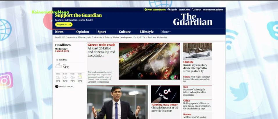 Πρώτο θέμα στον διεθνή τύπο είναι από τα ξημερώματα της Τετάρτης η σφοδρή σύγκρουση ενός επιβατικού τρένου με εμπορική αμαξοστοιχία στα Τέμπη.