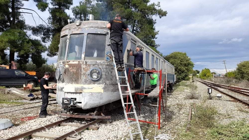 Οπως μας ενημερώνει ο Συλλογος Φίλων Σιδηροδρόμων Ελλαδος τεχνίτες της Γερμανικής σιδηροδρομικής εταιρείας HVLE πιστοί στο ραντεβού τους έφτασαν την προηγούμενη βδομάδα στο Βελεστίνο και ξεκίνησαν τις εργασίες εξωτερικής αποκατάστασης του πρώτου οχήματος της αυτοκινητάμαξας LH.