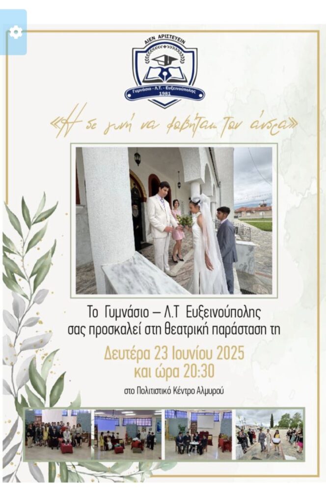 Το Γυμνάσιο – Λυκειακές Τάξεις Ευξεινούπολης παρουσιάζουν τη θεατρική παράσταση “Η δε γυνή να φοβείται τον άνδρα”