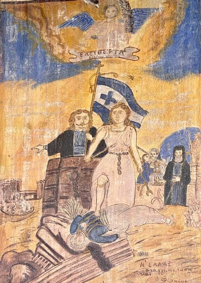 Ο Ρήγας Φεραίος και η πολυπόθητη Ελευθερία της πατρίδαςΜια σπάνια τοιχογραφία του Θεοφίλου έξω απο τον παλιό φούρνο του Αθανασίου Βελέντζα στην Άλλη Μεριά .. εκτεθειμένη , απροστάτευτη από τις αλλαγές του καιρού και βορά στις ορέξεις των βαρβάρων … Μήπως κάποιος θα έπρεπε να ενδιαφερθεί ;
