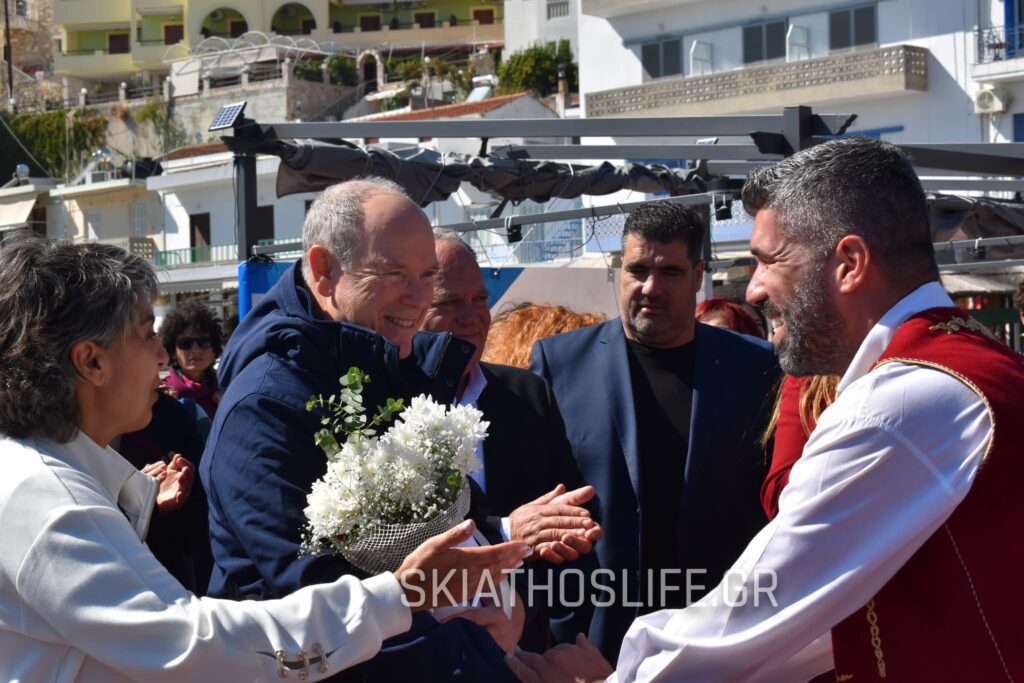 Η υποδοχή του Πρίγκιπα του Μονακό ήταν θερμή απο την δημοτική αρχή και κατοίκους του νησιού.