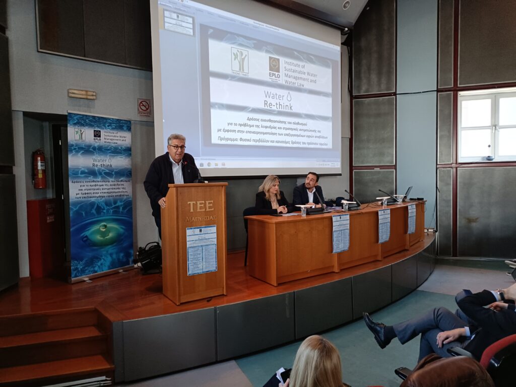 Οι επιπτώσεις της λειψυδρίας και των ακραίων πλημμυρικών φαινομένων στην ποιότητα των υδάτων-έμφαση στην επαναχρησιμοποίηση των υδάτων είναι το θέμα ημερίδα που πραγματοποιείται στο ΤΕΕ Μαγνησίας, με διοργανωτή το Ινστιτούτο Αειφόρου Διαχείρισης των Υδάτων του Δικαίου του Νερού του Ευρωπαϊκού Οργανισμού Δημοσίου Δικαίου και τελεί υπό την αιγίδα της Ένωσης Ελλήνων Χημικών και του ΤΕΕ Μαγνησίας.