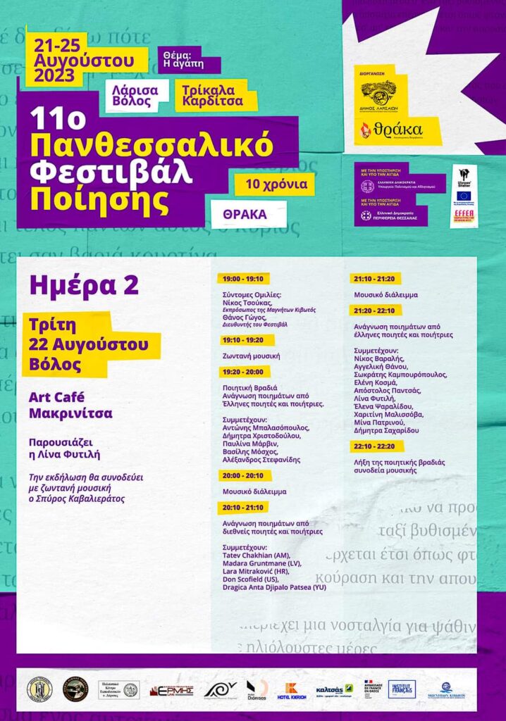 Σε λίγες μέρες ξεκινάει το 11ο Πανθεσσαλικό φεστιβάλ ποίησης (21- 25 Αυγούστου)