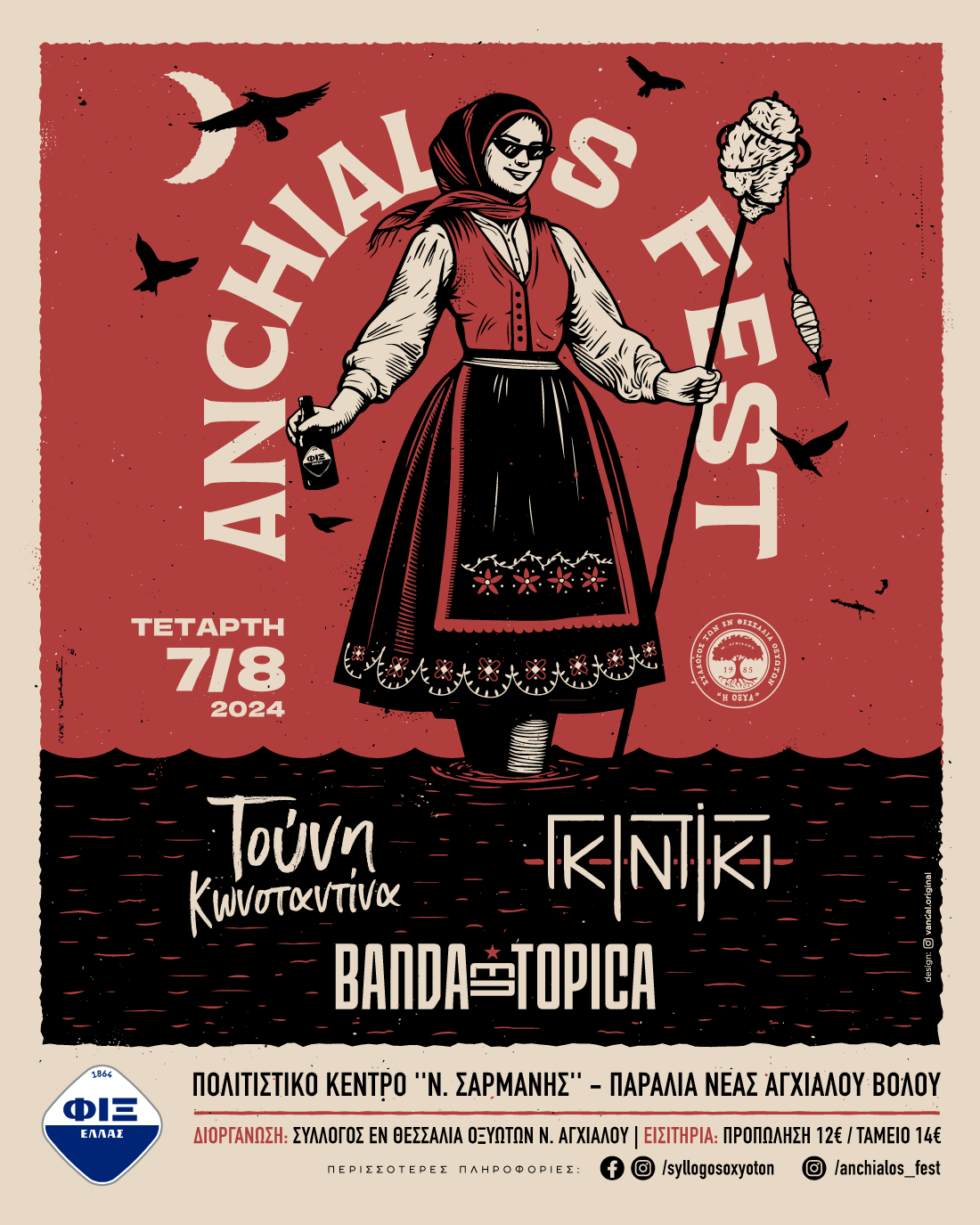 ΑΓΧΙΑΛΟΣ ΦΕΣΤ – Τετάρτη 7 Αυγούστου 2024 στη Ν. Αγχίαλο Βόλου, στο Πολιτιστικό Κέντρο “Ν. Σαρμάνης”, στον υπαίθριο χώρο όπου διοργανώνεται κάθε χρόνο η Γιορτή Κρασιού.
