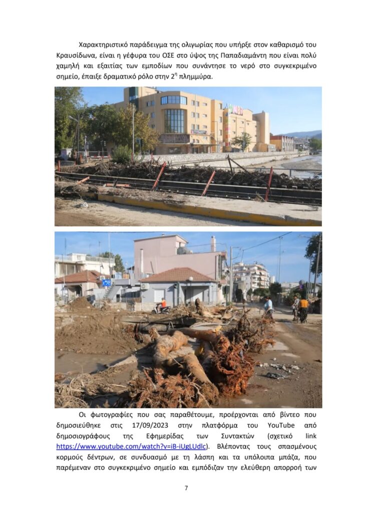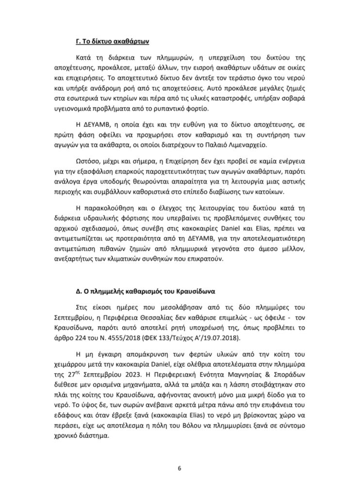 Όλα όσα καταγράφηκαν στην υπομνηματική αναφορά που επισυνάπτεται, αναδεικνύουν οπως υποστηρίζουν πιθανές ευθύνες και παραλείψεις που αφορούν στις κακοκαιρίες Daniel και Elias, ενώ επίσης παρατέθηκαν λεπτομέρειες που αξίζει να εξεταστούν, με έμφαση στις συνέπειες για το Παλαιό Λιμεναρχείο, αλλά και την κωλυσιεργία πως τονίζουν από πλευράς κράτους σχετικά με την αποκατάσταση της περιοχής.