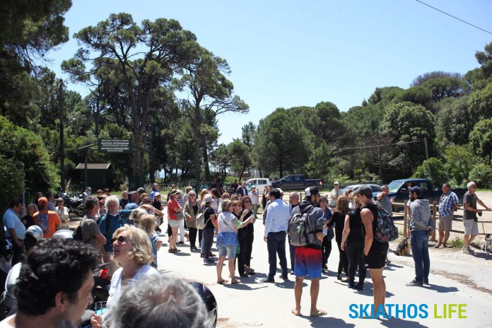 Χαιρετισμό στην συγκέντρωση απηύθυνε ο Δήμαρχος Σκιάθου κ. Θοδωρής Τζούμας που περιληπτικά ανέλυσε τις παρεμβάσεις και τις νομικές ενέργειες που έχουν πραγματοποιηθεί, ενώ εκ μέρους των διοργανωτών ο κ. Μανώλης Σιδέρης το ψήφισμα των φορέων.