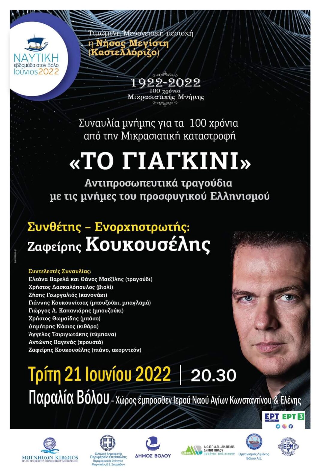 Ναυτική εβδομάδα στο Βόλο, 21 Ιουνίου: Συναυλία μνήμης για τα 100 χρόνια από την Μικρασιατική καταστροφή