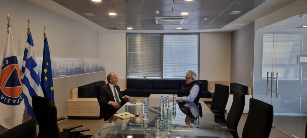 Τέλος, συζήτησε με τον Υπουργό για τον Εθνικό Μηχανισμό Εναέριας Έρευνας και Διάσωσης “Θεοφάνης Ερμής Θεοχαρόπουλος”, που θα συμβάλει στην αποτελεσματικότερη εκπλήρωση της αποστολής του Πυροσβεστικού Σώματος, για έρευνα και διάσωση ορειβατών, φυσιολατρών, αλλά και κατοίκων των ορεινών όγκων και ευχαρίστησε τον Υπουργό για την επιλογή της Αγχιάλου ως Βάσης Ετοιμότητας για την υλοποίηση του Εθνικού Σχεδίου.
