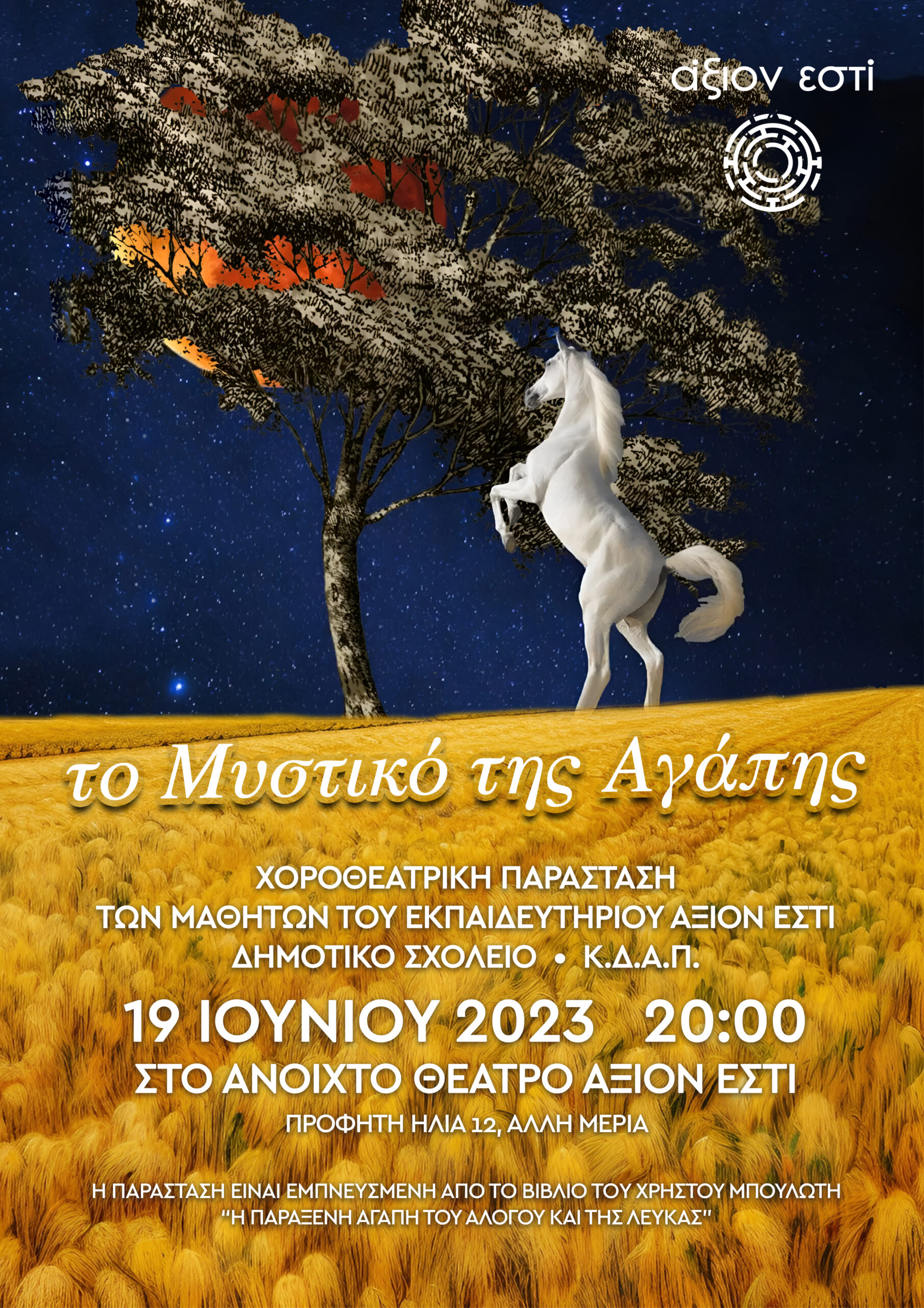Με την παράσταση αυτή η Εκπαιδευτική Κοινότητα του άξιον εστί αποχαιρετά μια υπέροχη σχολική χρονιά, αλλά και τους μαθητές και τις μαθήτριες