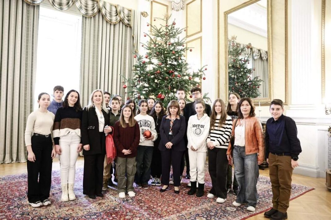“Ύψιστη τιμή για το Πρότυπο Γυμνάσιο Βόλου η προγραμματισμένη συνάντησή μας με την Πρόεδρο της Δημοκρατίας κ. Σακελλαροπούλου κ ο στολισμός του Χριστουγεννιάτικου δέντρου του Μεγάρου από τους μαθητές μας!!!” σημείωσε σε ανάρτησή της η σύνοδος καθηγήτρια Σοφία Κανταράκη.