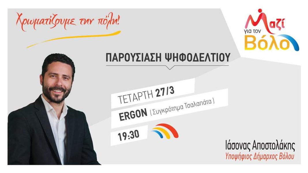 Ουδέν Κρυπτόν του Γιάννη Αναστασίου Το ψηφοδέλτιο του Ιάσονα Ουδέν Κρυπτόν του Γιάννη Αναστασίου Το ψηφοδέλτιο του Ιάσονα 26 Μαρτίου 2019 Η Δημοτική Κίνηση «Μαζί για τον Βόλο» και ο επικεφαλής της υπ. Δήμαρχος Ιάσονας Αποστολάκης μας προσκαλούν στην παρουσίαση του ψηφοδελτίου τους την Τετάρτη 27 Μαρτίου στις 7.30μμ στο Ergon Showground στο συγκρότημα Τσαλαπάτα. ΠΑΡΟΜΟΙΑ ΑΡΘΡΑΠΕΡΙΣΣΟΤΕΡΑ Τα παιδιά της Κιβωτού μας χρειάζονται Ναι στην διανομή κρεάτων… όχι όμως μπροστά στο Δημαρχείο Συνέδριο με πολιτικό δίλλημα… ναι ή όχι; Πρόσφατα Ανανεώθηκε η θητεία των Αντιδημάρχων στο Δήμο Βόλου 30 Δεκεμβρίου 2025 Αναπληρωτής Περιφερειαρχης ο Κ.Μπαρμπούτης- Ανανεώθηκε η 30 Δεκεμβρίου 2025 Ζέττα Μακρή στο Ράδιο ΕΝΑ: «Τσομπανάκος ο δήμαρχος Βόλου- Πρέπει να δώσει απαντήσεις» 30 Δεκεμβρίου 2025 Καμιά απάντηση για την Αργώ και το Μουσείο από τον “χαβαλέ” Αντιδήμαρχο του Μπέου (video) 29 Δεκεμβρίου 2025 Παραιτήθηκε ο Μπάμπης Ζάχος από το δημοτικό συμβούλιο – Στη θέση του ο Νίκος Κάπελας 29 Δεκεμβρίου 2025 Στην Βιβλιοθήκη της Σκοπέλου η δωρεά βιβλίων Ε. Σούρλα – Εκδήλωση παρουσία του Δ.Κουρέτα 29 Δεκεμβρίου 2025 Στην Παιδιατρική του νοσοκομείου ο Αϊ Βασίλης ήρθε από την καμινάδα 29 Δεκεμβρίου 2025 Κόβεται η Ελλάδα στις 4μ.μ – Τρίωρο «μπλόκο» και στους παρακαμπτήριους – Τα τρακτέρ θα... 29 Δεκεμβρίου 2025 Απίστευτη ταλαιπωρία για τους ταξιδιώτες στην ΠΑΘΕ: 10 ώρες το ταξίδι Βόλος- Αθήνα (video) 29 Δεκεμβρίου 2025 Πέθανε η θρυλική Μπριζίτ Μπαρντό στα 91 της χρόνια 28 Δεκεμβρίου 2025