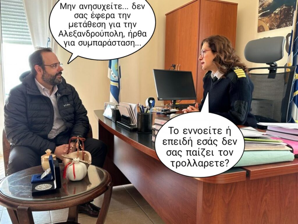 Η συνάντηση του βουλευτή με την Λιμενάρχη Βόλου έγινε δύο ημέρες μετά το φραστικό επεισόδιο εις βάρος της από τον κ. Μπέο στην παραλία κατά τα τη διάρκεια του εορτασμού των Θεοφανίων.