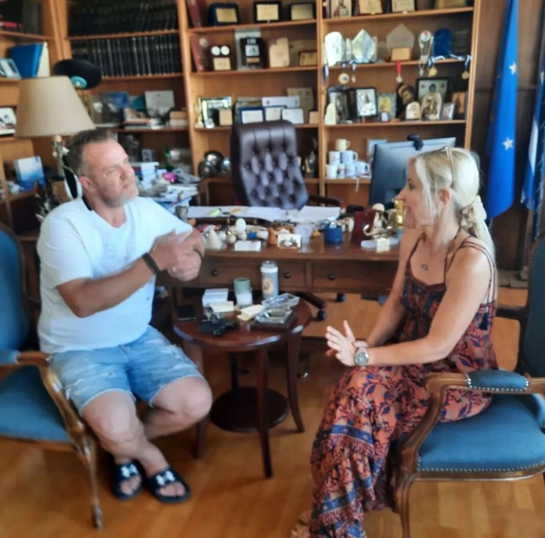 Αντιλαμβάνομαι ότι υπάρχει οικειότητα, ότι είναι καλοκαίρι κτλ… ωστόσο αγαπητέ πρόεδρε της Τοπικής Κοινότητας Σεσκλου κ. Τσιαμήτα… δεν πάνε στο γραφείο της Αντιπεριφερειάρχη με βερμούδα και παντόφλα… Και εσείς κα Κολυνδρινη δεν έπρεπε να τον καρφώσετε τον άνθρωπο… υπάρχει και το κόψιμο της φώτο όπως σας δείχνουμε παρακατω: