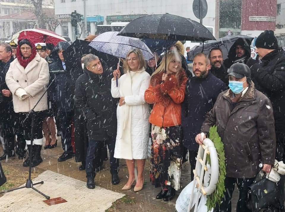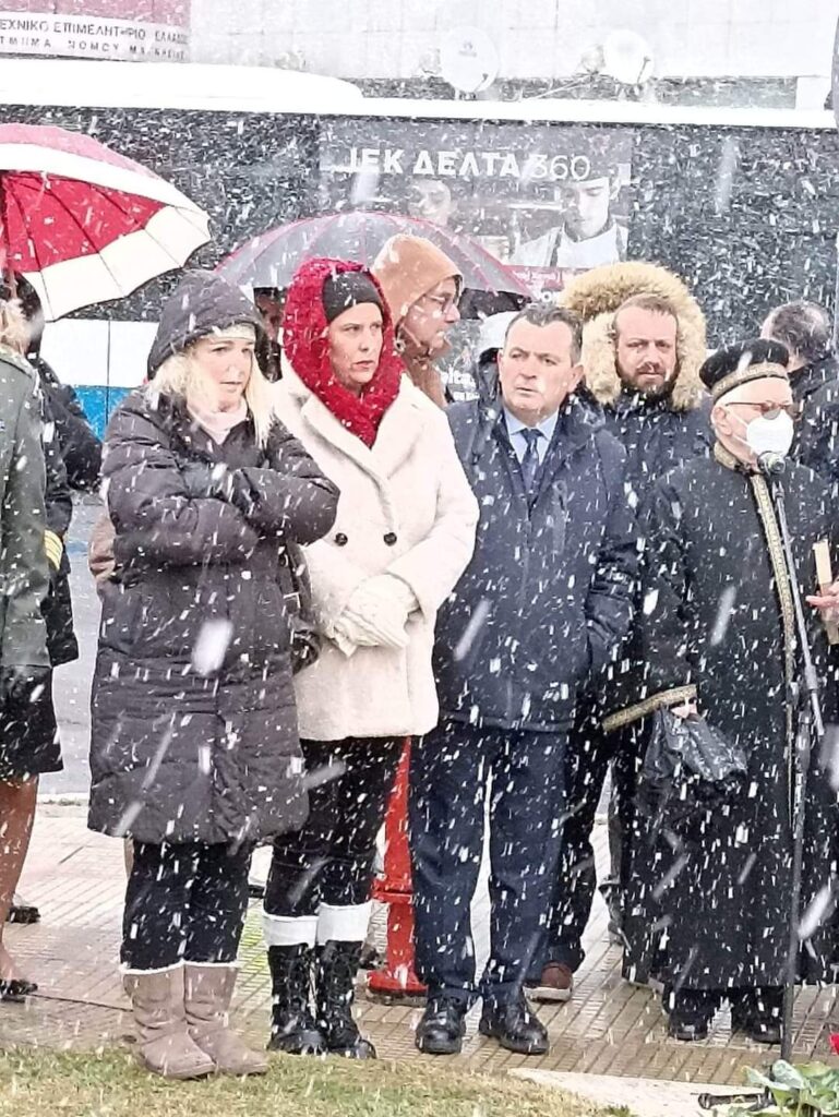 Με χιονιά έγινε από τις αρχές του τόπου η κατάθεση στεφάνων στο μνημείο του Ολοκαυτώματος σήμερα το πρωί στο Βόλο. Η συνέχεια των εκδηλώσεων πραγματοποιείται στο συνεδριακό κέντρο της Ιεράς μητρόπολη στα Μελισσιάτικα