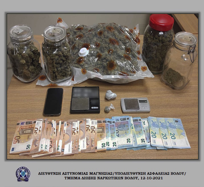Ειδικότερα, στο πλαίσιο καταπολέμησης της διακίνησης ναρκωτικών ουσιών, οι αστυνομικοί της προαναφερόμενης Υπηρεσίας, σε συνεργασία με αστυνομικούς της Ομάδας Δίκυκλης Αστυνόμευσης (ΔΙ.ΑΣ.) Βόλου, διενήργησαν έλεγχο σε Ι.Χ. επιβατικό αυτοκίνητο όπου επέβαινε ο ένας δράστης, στο εσωτερικό του οποίου βρέθηκε και κατασχέθηκε μία νάιλον συσκευασία με ποσότητα ακατέργαστης κάνναβης, βάρους -4,1- γραμμαρίων, την οποία, όπως εξακριβώθηκε, προμηθεύτηκε λίγη ώρα νωρίτερα από την οικία του άλλου δράστη.