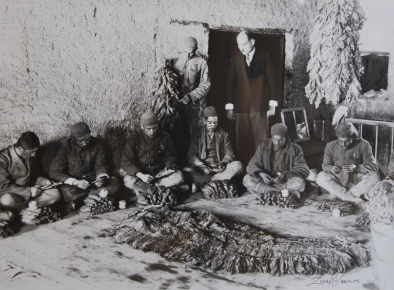 Μικρασιάτες πρόσφυγες στη διαλογή καπνών σε καπναποθήκη του Βόλου, 1923 (φωτ. Κώστα Ζημέρη)