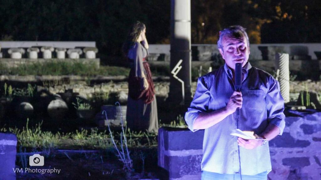 Η εκδήλωση άρχισε με τον συμπατριώτη μας, αρχαιολόγο, κ. Πασχάλη Σταντζούρη, ο οποίος καλωσόρισε εκ μέρους της Εφορίας Αρχαιοτήτων Μαγνησίας τους παρευρισκόμενους, αναφέρθηκε στη σημασία της πρωτοβουλίας του Υπουργείου Πολιτισμού να πραγματοποιηθούν πολιτιστικές δράσεις στα μουσεία ολόκληρης της ελληνικής επικράτειας στην τελευταία αυγουστιάτικη πανσέληνο και αναφέρθηκε στην τραγωδία Ευριπίδη.