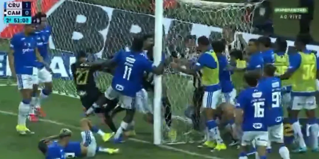 Ο Λούκας Ρομέρο έφτασε τρέχοντας και κλώτσησε τον Έβερσον, με τους ποδοσφαιριστές της Ατλέτικο να μπαίνουν αμέσως στη συμπλοκή. Την ίδια στιγμή, ο Κάσιο είχε έντονο επεισόδιο με τον Λιάνκο, με τον τερματοφύλακα της Κρουζέιρο να τον κλωτσά. Ο Λιάνκο στη συνέχεια ενεπλάκη και σε καβγά με τους Γκέρσον και Κρίστιαν. Παράλληλα, ο Χουλκ βρέθηκε στην πρώτη γραμμή της έντασης για την Ατλέτικο, γρονθοκοπώντας τον Βιγιάλμπα και κλωτσώντας τον Ρομέρο. Ακόμη και ο σκόρερ του αγώνα, Κάιο Ζόρζε, ενεπλάκη στη σύρραξη, ανταλλάσσοντας γροθιές και κλωτσιές με παίκτες των αντιπάλων.