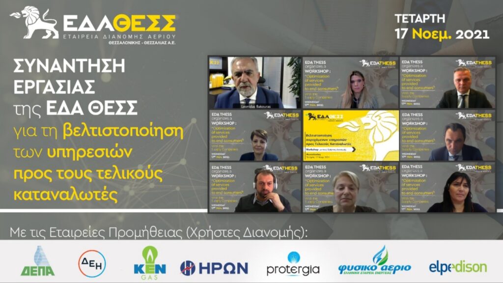 Σημαντικά ήταν τα οφέλη από τη συνάντηση εργασίας που πραγματοποίησε διαδικτυακά η ΕΔΑ ΘΕΣΣ σε μια συγκυρία όπου οι προκλήσεις για τον κλάδο της ενέργειας κρίνονταιιδιαίτερα σημαντικές.Στη συνάντηση προσκλήθηκαν όλοι οι Χρήστες Διανομής που δραστηριοποιούνται στα δίκτυα φυσικού αερίου της Θεσσαλονίκης και Θεσσαλίας. Σε ένα κοινό πλαίσιο αναφοράς κινήθηκε η παρουσίαση των βασικών θεμάτων μεταξύ των Εταιρειών Προμήθειας και της Εταιρείας. Τα θέματα που αναδείχθηκαν και τέθηκαν ειδικώς αφορούν όλο το φάσμα των δραστηριοτήτων της ΕΔΑ ΘΕΣΣ.