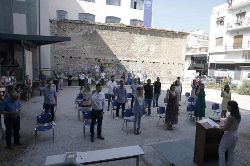 Και όπως ορθά έγραψε στην ανάρτηση του ο Πρόεδρος του Τμήματος Μιχάλης Ζουμπουλάκης : “Ανάγκη, μητέρα της εφευρετικότητας! Από τη χθεσινή ορκωμοσία πυχιούχων στο Τμήμα μας”. Η τελετή έλαβε χώρα στην αυλή του Τμήματος από την Παύλου Μελά