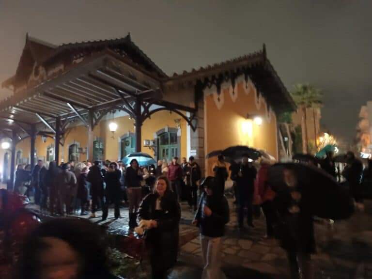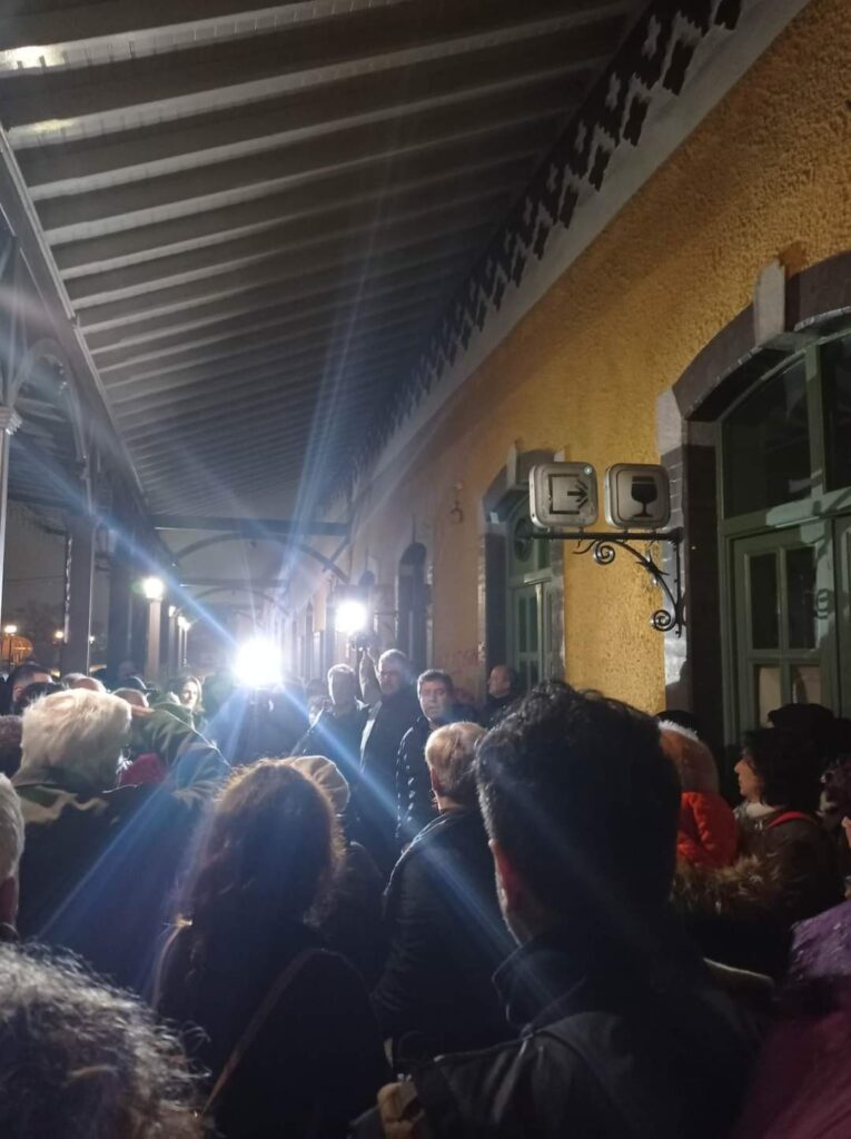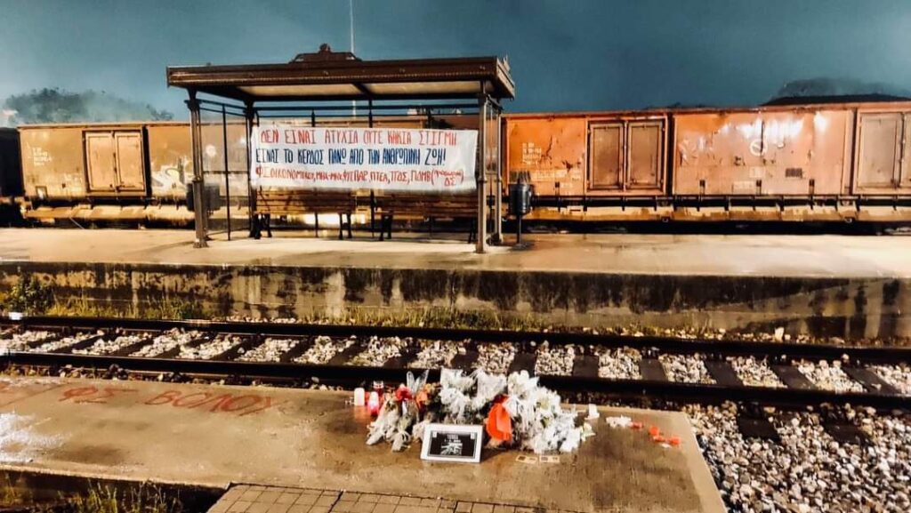 Στις γραμμές του τρένου οι διαδηλωτές άφησαν λουλούδια και αναμμένα κεριά