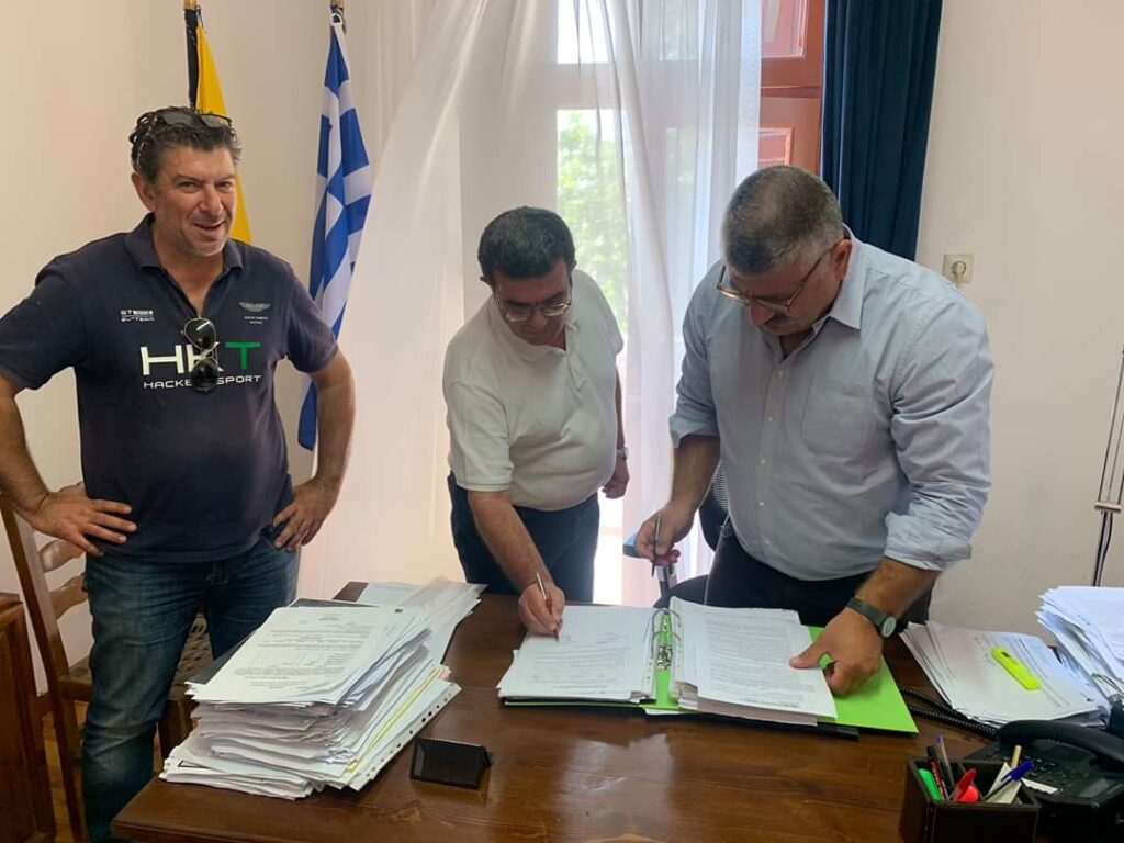 Υπογραφή σύμβασης με τον ανάδοχο του έργου ολοκλήρωσης εργασιών του νέου Δημαρχείου από τον Δήμαρχο Μ.Μιτζικό παρουσία του Αντιδημάρχου Οικονομικών Δ.Παρρησιάδη.