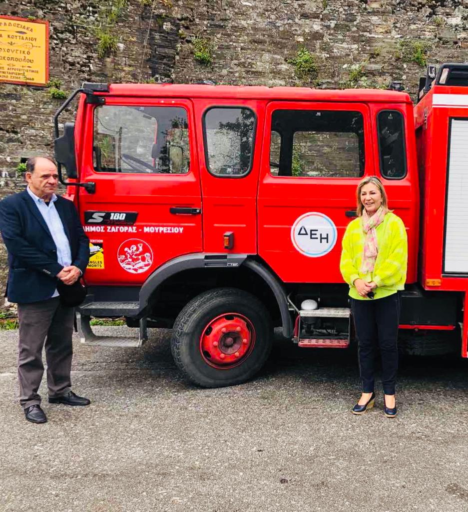Τις θερμές ευχαριστίες της εκφράζει η Υφυπουργός Παιδείας και Θρησκευμάτων και υποψήφια Βουλευτής Μαγνησίας κ. Ζέττα Μ. Μακρή στον Διευθύνοντα Σύμβουλο της ΔΕΗ Α.Ε. κ. Γ. Στάσση, που, στο πλαίσιο της εταιρικής κοινωνικής ευθύνης της, χορηγεί πυροσβεστικό όχημα στον Δήμο Ζαγοράς – Μουρεσίου για την κάλυψη των αναγκών του.