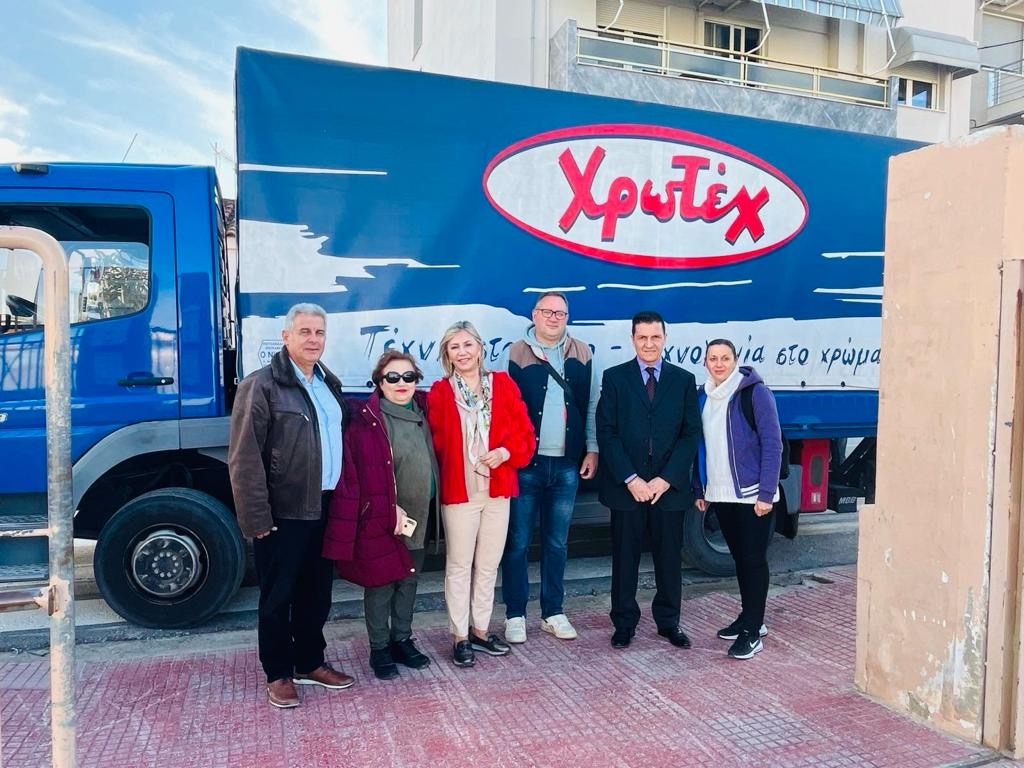 Μαζί με τον κ. Γιάννη Κυριακίδη Διευθύνοντα Σύμβουλο της χορηγού εταιρείας, η κα Μακρή επισκέφτηκε τη Φαρκαδόνα Ν. Τρικάλων και παρέδωσε ποσότητες οικολογικών χρωμάτων στον εφημέριο του Ιερού Ναού των Αγίων Αποστόλων για την διανομή τους και την αποκατάσταση της εικόνας εξωτερικών και εσωτερικών χώρων των σχολείων μετά τις πρωτοφανείς πλημμύρες του Σεπτεμβρίου που έπληξαν και τη Φαρκαδόνα. Αξίζει να σημειωθεί, επίσης, ότι με πρωτοβουλία του Σωματείου Εργαζομένων της εταιρείας ΧΡΩΤΕΧ Α.Ε. αγοράστηκαν υλικά καθαρισμού και απολύμανσης χώρων, τα οποία προστέθηκαν στην παραπάνω προσφορά.