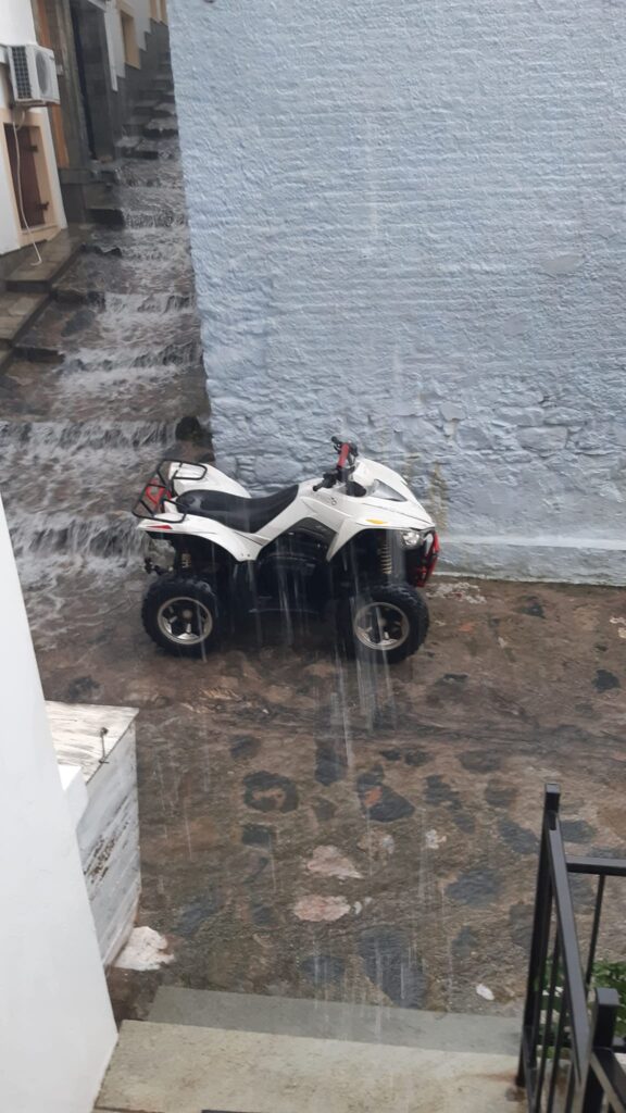 Τα σχολεία έμειναν κλειστά καθώς από χθες είχε μπει νερό και σε αυτό της Σκοπέλου και της Γλώσσας είτε από τη σκεπή είτε, από τα παράθυρα που χρειάζονται αντικατάσταση.